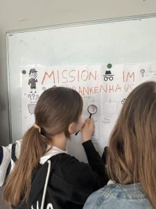 Uczniowie uczestniczący w zajęciach dodatkowych z języka niemieckiego wcielili się w rolę „językowych detektywów” 🕵️. Wraz z panią Sylwią wzięli udział w wyjątkowej misji detektywistycznej, której