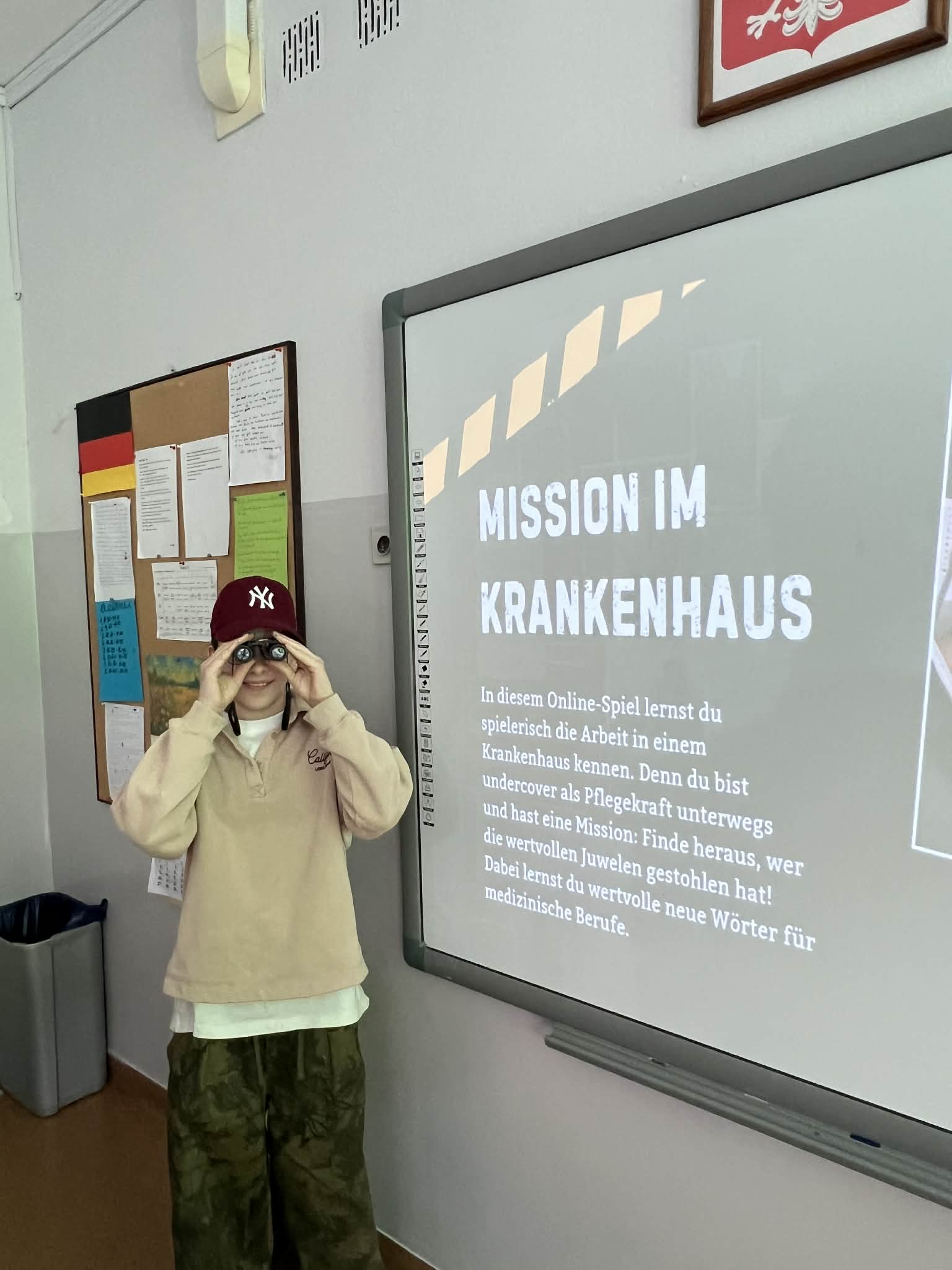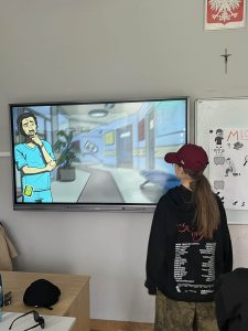 „Mission im Krankenhaus” to interaktywna gra edukacyjna dla osób uczących się języka niemieckiego. Dynamiczna, pełna zwrotów akcji fabuła sprawia, że uczniowie z zaangażowaniem dążą do rozwiązania zagadki, jednocześnie naturalnie przyswajając nowe słownictwo i struktury językowe. Taka forma nauki pobudza kreatywność, zachęca do aktywnego używania języka obcego oraz rozwija kompetencje komunikacyjne.