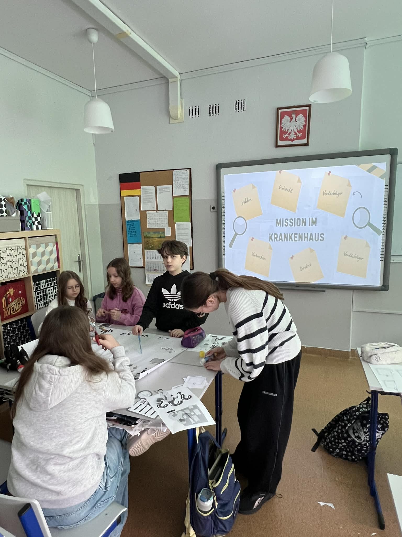 Uczniowie uczestniczący w zajęciach dodatkowych z języka niemieckiego wcielili się w rolę „językowych detektywów” 🕵️. Wraz z panią Sylwią wzięli udział w wyjątkowej misji detektywistycznej, której celem było odnalezienie ukrytych wskazówek, poszerzenie zasobu niemieckiego słownictwa oraz rozwiązanie zagadki przygotowanej przez Instytut Goethego.